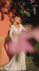 Long sleeve, v neck, boho style embroidered cotton lace, plunging v back with a sweep train