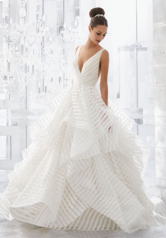 Milly , Flounced Organza Shadow Stripe Ball Gown with Wide Horsehair Edging