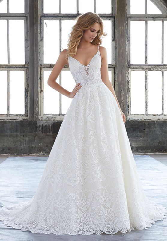 Kasey. Vintage Allover Embroidery on Net. Matching Satin Bodice Lining Included