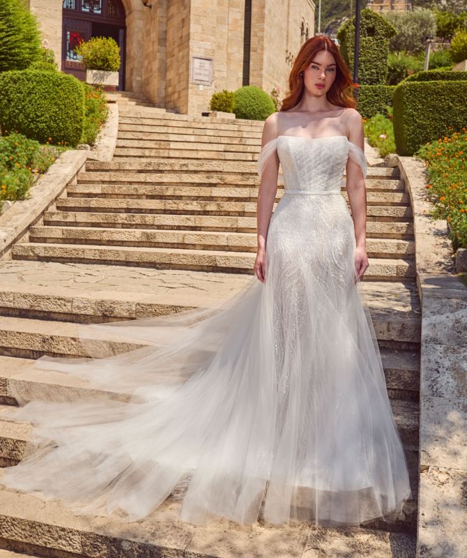 Ideal for brides ready to light up the day with their own dazzling magic, this sparkly wedding dress captures the essence of celestial beauty with her beaded lace and ethereal elegance. Designed with a figure-flattering silhouette, Marisol enhances your natural curves while providing the perfect blend of glamor and sophistication. Her detachable tulle overskirt (sold separately) adds an ethereal touch, offering a beautiful transformation from a sleek, fitted wedding gown to a dreamy, flowing look. Whether you’re walking down the aisle or dancing under the stars, Marisol ensures you shine bright like the star you are, catching the light with every movement.