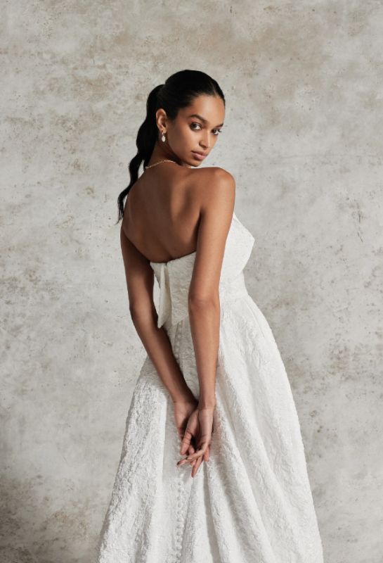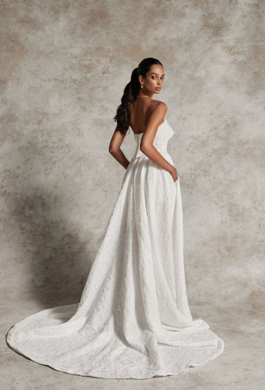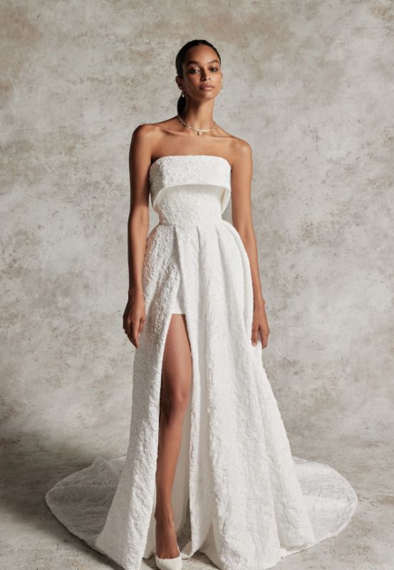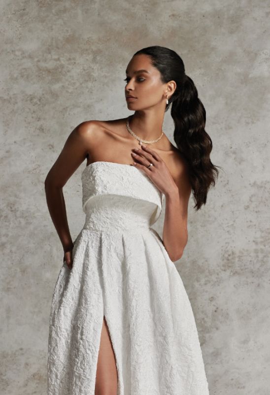 brocade strapless cuff neckline a-line with slit