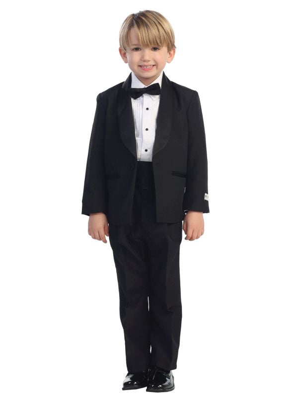 round shawl collar tuxedo set including jacket, pants, shirt, cummerbund and bowtie