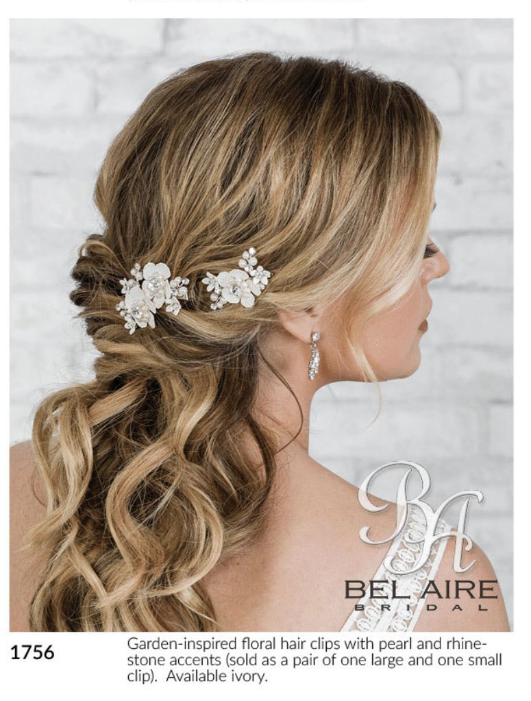 garden inspired floral hair clips with pearl and rhinestone accents. Sold as a pair of one large and one small clip. Available in ivory (as sampled)