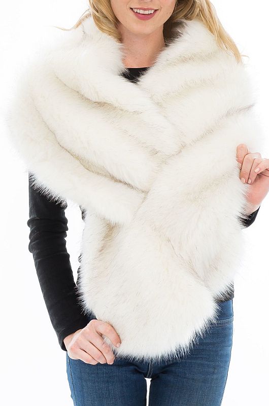 Luxury Faux Fur Shrug Satin Lined front fastener - Cream/Ivory/Off White with black specks - 80% Acrylic, 10% Spandex,10% Fur