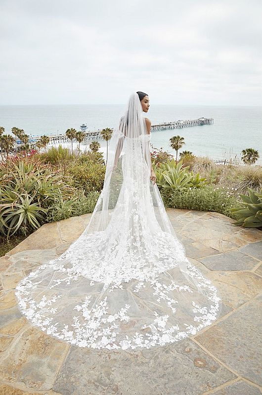 125" sequined lace veil gathered on a metal comb matching style BL378 (available in various lengths)