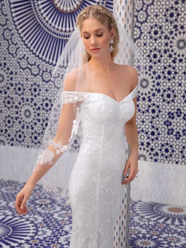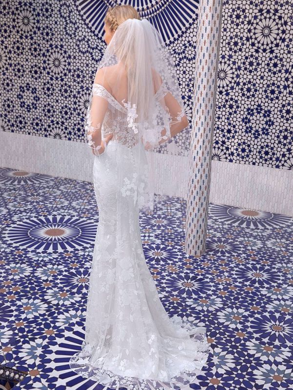 25"x40" two tier sequin floral lace appliques throughout, gathered on metal comb