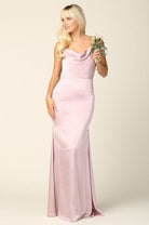 spaghetti strap cowl neck sheath dress with stretch lining (available XS-4X burgundy, dusty blue, mauve, champagne, hunter green, white)