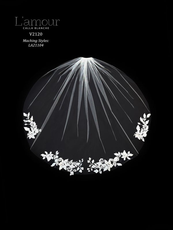 Tulle veil with leafy sequins around the edge, gathered on a metal comb