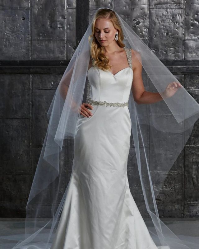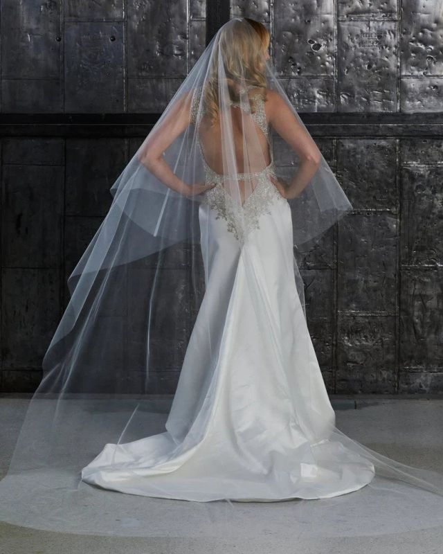 two tier 30 x 108 circle veil with cut edge on flat metal comb