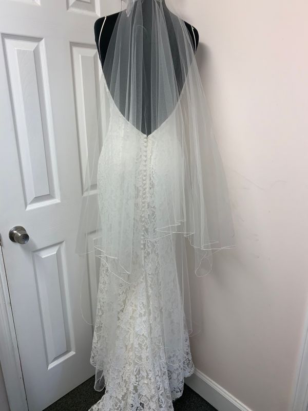 two tier 30 x 50 circle veil foldover with rolled edge on flat metal comb
