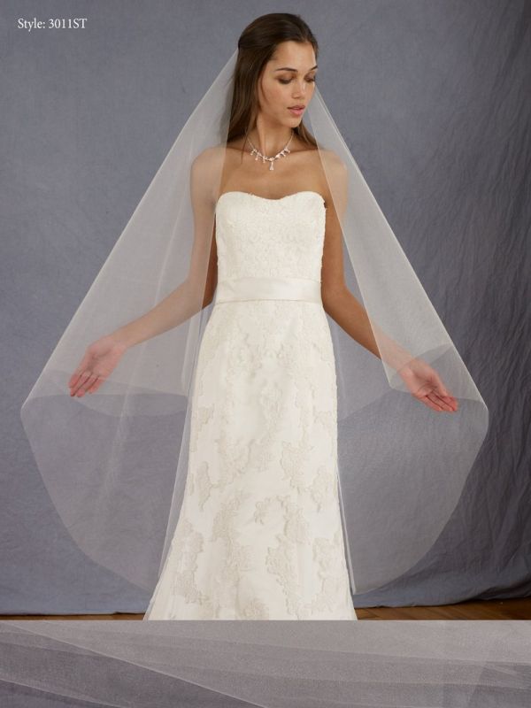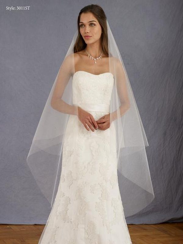 two tier 30 x 50 circle Sparkle Tulle veil with cut edge on flat metal comb