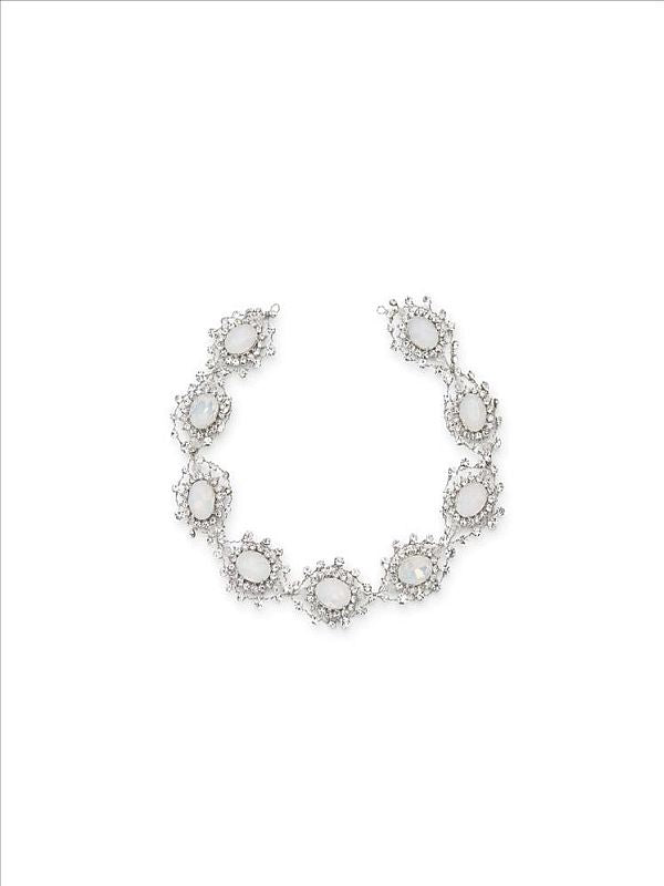 flexible metal hair accessory with oval glass beads and rhinestone vine