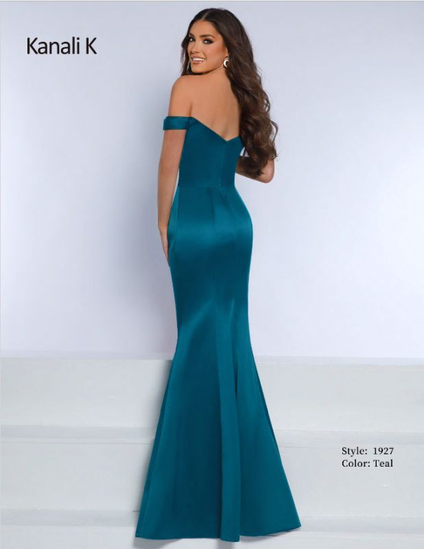 off the shoulder, modified scoop, partial pleated bodice, slight v back