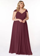 Empire V-Neck Ruched Chiffon Floor-Length Dress Cabernet