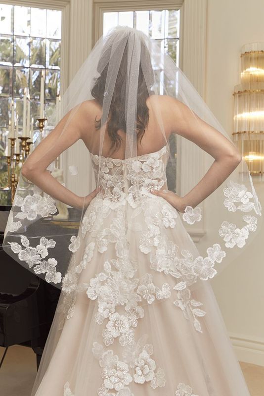 40" single tier veil with Delicate floral lace appliqués with sequins gathered on a metal comb - matches style 2559 (can be ordered in various lengths)
