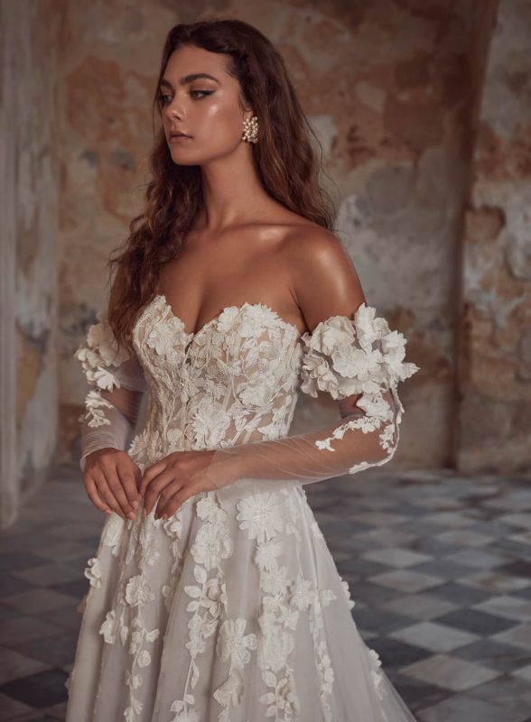 ultra-sophisticated long sleeves featuring matching lace to gown 123111 Shania